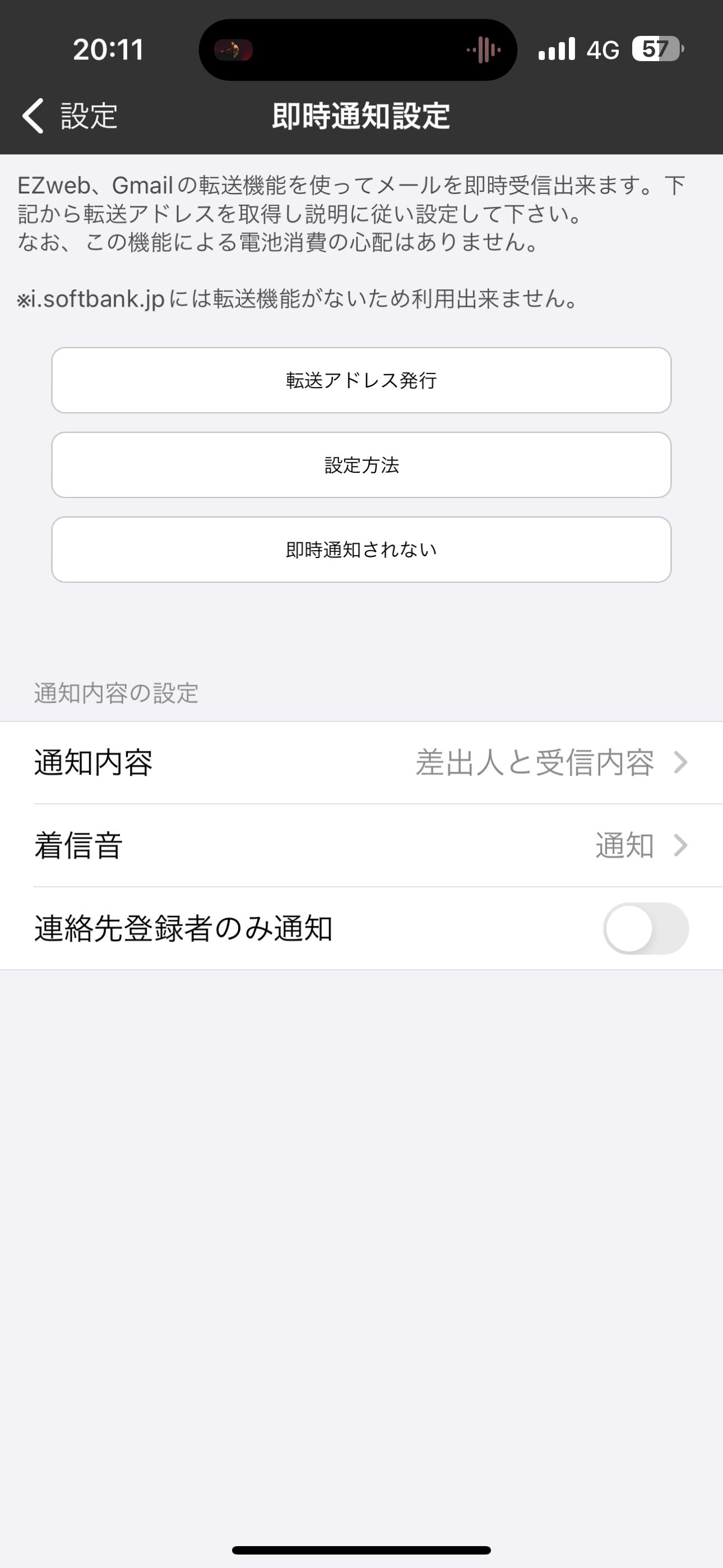 即時通知ができません。アプリを開いたらメールが届きます。